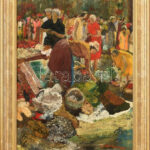 Őri Rózsa Gyula (?- ): Piac. Olaj, farost jelzett. Dekoratív fakeretben, 64×43 cm<a href="https://www.darabanth.com/hu/gyorsarveres/436/kategoriak~Festmenyek-es-grafikak/Festmenyek-es-grafikak~500001/Ori-Rozsa-Gyula-Piac-Olaj-farost-jelzett-Dekorati