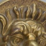 Oroszlánfejes kopogtató, öntött bronz, hozzá való csavarokkal, 13,5×11 cm<a href="https://www.darabanth.com/hu/gyorsarveres/415/kategoriak~Mutargy-papirregiseg-egyeb/Bolhapiac~500012/Oroszlanfejes-kopogtato-ontott-bronz-hozza-valo-csavarokkal-13-5×1