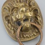 Oroszlánfejes kopogtató, öntött bronz, hozzá való csavarokkal, 13,5×11 cm<a href="https://www.darabanth.com/hu/gyorsarveres/415/kategoriak~Mutargy-papirregiseg-egyeb/Bolhapiac~500012/Oroszlanfejes-kopogtato-ontott-bronz-hozza-valo-csavarokkal-13-5×1