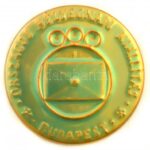 ‘Országos bélyegnapi kiállítás – Budapest’ Zsolnay eozinmázas emlékérem, jelzett, apró kopásnyomokkal, d: 10 cm