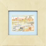 Orvos András (1939- ): Vác, látkép. Tus, akvarell, papír, jelzett, hátoldalán autográf felirattal. Üvegezett fa keretben, 13×18 cm<a href="https://www.darabanth.com/hu/gyorsarveres/414/kategoriak~Festmenyek-es-grafikak/Festmenyek-es-grafikak~500001/