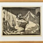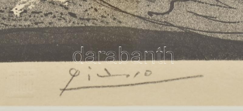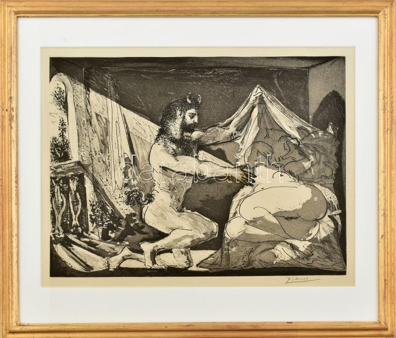 Pablo Picasso (1881-1973): Faune devailant une femme. Facsimile grafika rézkarc után, papír, jelzett a grafikán nyomtatva, szárazpecséttel, 27×36 cm. Üvegezett fakeretben<a href="https://www.darabanth.com/hu/gyorsarveres/422/kategoriak~Festmenyek-es