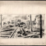 Pályi Jenő (1903-1953), 2 db rajz egy lapon: Horthy-karikatúra és Diósgyőr. Tus, kréta (Horthy-karikatúra), szén (Diósgyőr), papír, mindkét oldalán jelzett. Lapméret: 25,5×30 cm<a href="https://www.darabanth.com/hu/gyorsarveres/436/kategoriak~Festme