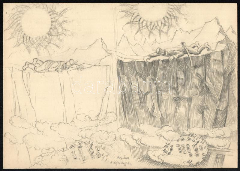Pánczél Béla (1900-1966), össz. 4 db rajz: 2 db vitéz Háry János illusztráció és 2 db székelyföldi jelenet. Ceruza, tus, papír, Háry János illusztrációk jelzés nélkül, többi jelzett. 21,5×30,5 cm<a href="https://www.darabanth.com/hu/gyorsarveres/435