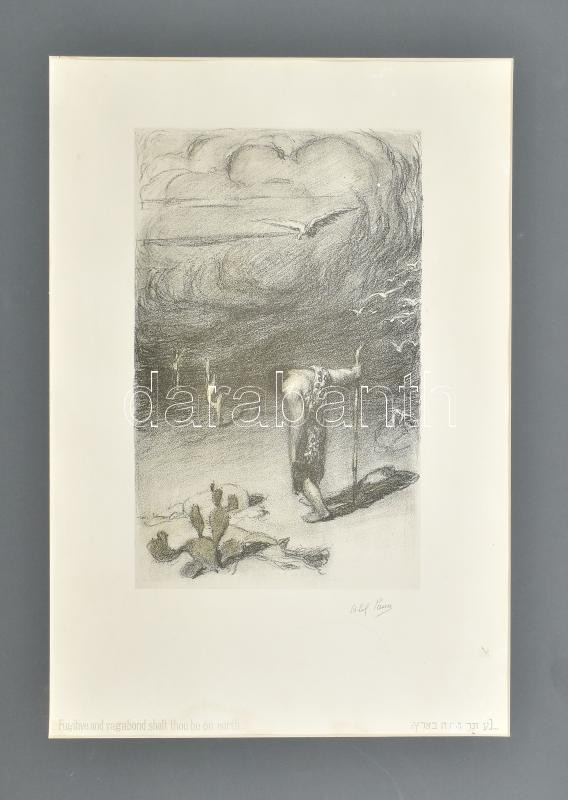 Pann, Abel (1883-1963): Káin, a menekülő (Fugitive and vagabond shalt thou be on earth). Litográfia, papír, jelzett a litográfián, paszpartuban. Lap alján apró felületi sérüléssel. 28,5×18 cm<a href="https://www.darabanth.com/hu/gyorsarveres/437/kat