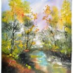 Papp Tünde (1978-): Nyárfás part. Olaj, farost, jelzett, 45×33 cm