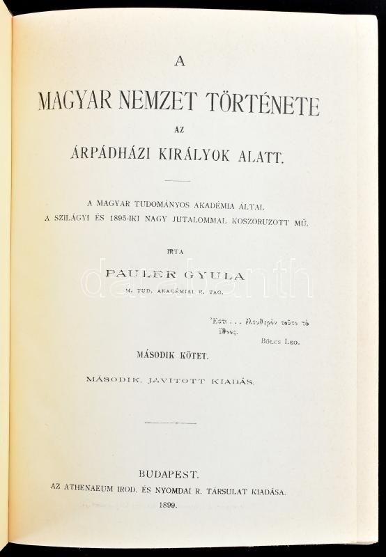Pauler Gyula: A magyar nemzet története az Árpád-házi királyok alatt. I-II. kötet. Bp., 1984, ÁKV. Kiadói aranyozott műbőr kötésben. Reprint kiadás.