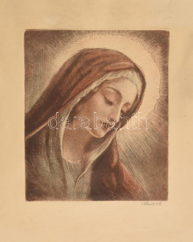 Paulovits Pál (1892-1975): Mária, színezett rézkarc, papír, jelzett, kissé foltos, 30×26 cm<a href="https://www.darabanth.com/hu/gyorsarveres/436/kategoriak~Festmenyek-es-grafikak/Festmenyek-es-grafikak~500001/Paulovits-Pal-1892-1975-Maria-szinezett