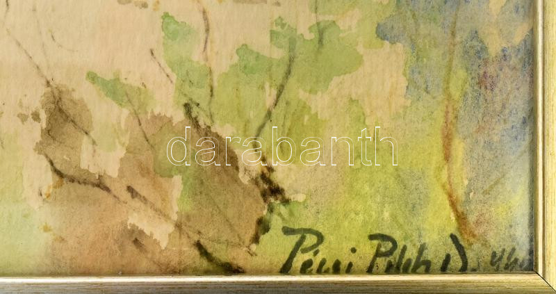 Pécsi Pilch Dezső (1888-1949): Hídépítés (Újpesti vasúti híd?). Akvarell, papír, jelezve jobbra lent. Dekoratív fakeretben. 31,5×67,5 cm. / watercolour on paper, signed, framed<a href="https://www.darabanth.com/hu/nagyaukcio/40/kategoriak~Festmenyek