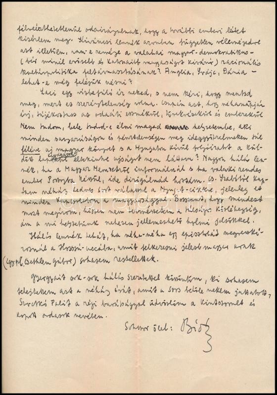 Peéry Rezső (1910-1977) író, publicista autográf levele Vass László (1905-1950) újságíró, kritikusnak hosszasan ecsetelve a kisebbségi magyar értelmiségben való elszigeteltségét.<a href="https://www.darabanth.com/hu/gyorsarveres/413/kategoriak~Mutar