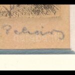 Pekáry István (1905-1981): Szamárháton. Rézkarc, akvarell, papír. Jelzett. Lap teteje foltos. Paszpartuban. 13,5×9,5 cm<a href="https://www.darabanth.com/hu/gyorsarveres/417/kategoriak~Festmenyek-es-grafikak/Festmenyek-es-grafikak~1/Pekary-Istvan-19