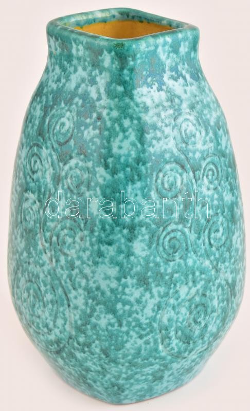 Péter Ferenc: Zöld váza. Kézzel festett, mázas kerámia, jelzett, hibátlan. 22 cm<a href="https://www.darabanth.com/hu/gyorsarveres/413/kategoriak~Porcelan-keramia-uveg/Keramiak~500005/Peter-Ferenc-Zold-vaza-Kezzel-festett-mazas-keramia-jelzett-hibat
