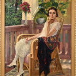 Pogány Lajos (1873-1947): Art deco hölgy portréja, 1920-as évek. olaj, vászon, jelezve jobbra lent. Kisebb felületi sérülésekkel. Dekoratív fakeretben. 80×60 cm<a href="https://www.darabanth.com/hu/gyorsarveres/436/kategoriak~Festmenyek-es-grafikak/