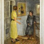 Pogány Lajos (1873-1947): Art deco hölgyek, 1928. Olaj, vászon, jelzett a hátoldalán. Dekoratív fakeretben. 80×60 cm. / oil on canvas, signed on the reverse, framed