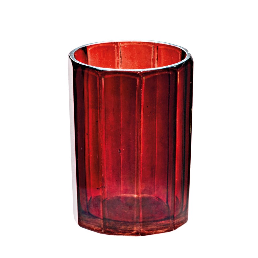 Parád, 19. sz. vége, bíborpácolt csiszolt üveg, aranyozás nyomával, m: 10, 4 cm