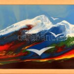 Póka György (1944- ): Havas hegycsúcsok. Zománcfesték, farost, jelzett, fa keretben. Hátoldalán Póka György autográf ajándékozási soraival Gyula város díszpolgára, Gerhard Stengel részére. 32×42 cm<a href="https://www.darabanth.com/hu/gyorsarveres/4