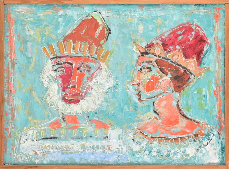 Prokop Péter (1919-2003): Öreg király s fiatal királyné, Róma, 1979. Olaj, farost, jelezve balra lent, hátoldalán autográf felirattal. Fakeretben. 42×59 cm<a href="https://www.darabanth.com/hu/gyorsarveres/432/kategoriak~Festmenyek-es-grafikak/Festm