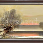 Puskás Imre (1933 – ): Tél. Olaj, farost, jelzett, fakeretben, 50x90cm<a href="https://www.darabanth.com/hu/gyorsarveres/431/kategoriak~Festmenyek-es-grafikak/Festmenyek-es-grafikak~5000002/Puskas-Imre-1933-Tel-Olaj-farost-jelzett-fakeretben-50x90cm