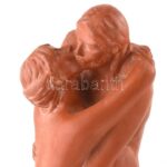Rácz Edit (1936): Szerelmespár. Terrakotta szobor, jelzett, apró hibákkal, m: 20 cm