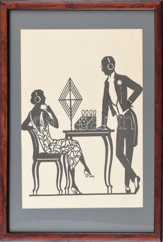 Rádiót hallgató art deco pár. Nyomat, papír. Dekoratív, üvegezett fakeretben. 35×27 cm<a href="https://www.darabanth.com/hu/gyorsarveres/415/kategoriak~Mutargy-papirregiseg-egyeb/Bolhapiac~500012/Radiot-hallgato-art-deco-par-Nyomat-papir-Dekorativ-u