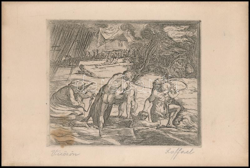 Raffael jelzéssel: Vízözön. Rézkarc, papír, kartonra kasírozva, foltos, 15×18,5 cm<a href="https://www.darabanth.com/hu/gyorsarveres/415/kategoriak~Festmenyek-es-grafikak/Festmenyek-es-grafikak-jelzessel-jelzes-nelkul~500002/Raffael-jelzessel-Vizozo