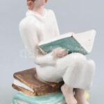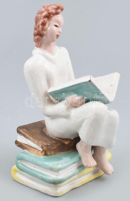 Rámer Mária olvasó nő art deco mázas kerámia figura edzés nélkül javított 18 cm