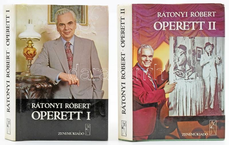 Rátonyi Róbert: Operett I-II. köt. A szerző, Rátonyi Róbert (1923-1992) színművész által Gyöngy Pál (1902-1990) zeneszerző, dalszerző részére szóló kettős dedikációival. Bp., 1984., Zeneműkiadó. Első kiadás. Kiadói egészvászon-kötés, kiadói papír védőborí