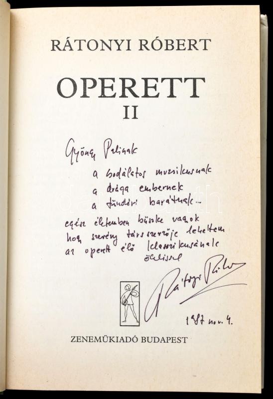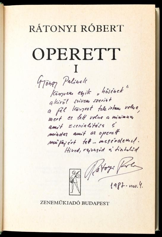 Rátonyi Róbert: Operett I-II. köt. A szerző, Rátonyi Róbert (1923-1992) színművész által Gyöngy Pál (1902-1990) zeneszerző, dalszerző részére szóló kettős dedikációival. Bp., 1984., Zeneműkiadó. Első kiadás. Kiadói