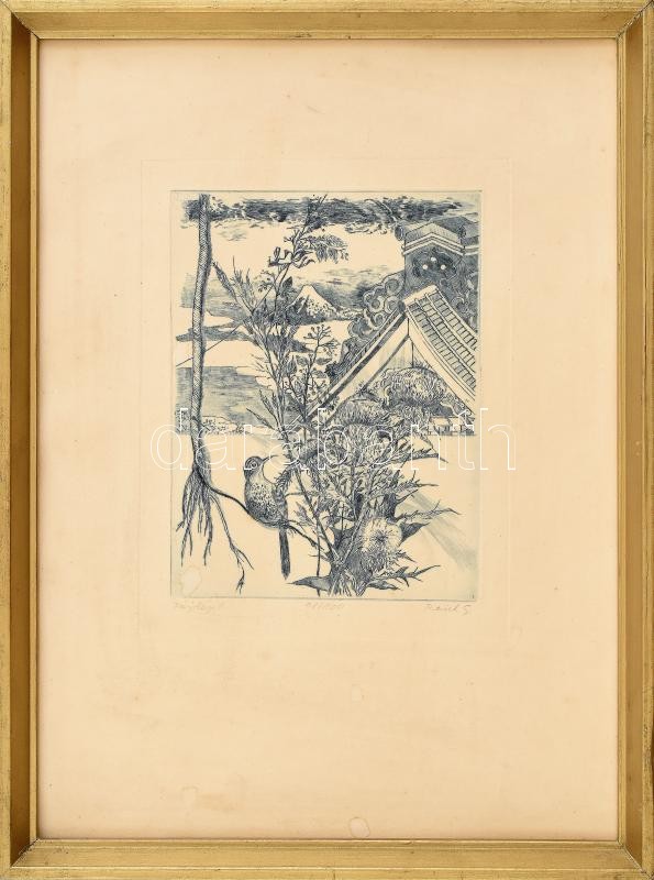 Reich Gábor (1951-): Tájkép II. Rézkarc, papír, jelzett, számozott (98/100). Kissé foltos. Dekroatív fakeretben, 23×17 cm<a href="https://www.darabanth.com/hu/gyorsarveres/415/kategoriak~Festmenyek-es-grafikak/Festmenyek-es-grafikak~500001/Reich-Gab