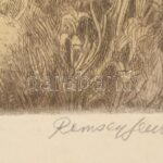 Remsey Jenő (1885-1980): Erdőszéle. Színezett rézkarc, papír, jelzett, bal felső sarka foltos, fa keretben, 29,5×39 cm<a href="https://www.darabanth.com/hu/gyorsarveres/411/kategoriak~Festmenyek-es-grafikak/Festmenyek-es-grafikak~505001/Remsey-Jeno-