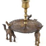 Réz gyertyatartó teve figurális díszítéssel 17cm