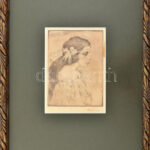 Rippl Rónai József (1861-1927) – Prihoda István (1891-1956): Fiatal lány portréja. Hidegtű, papír. Üvegezett dekoratív keretben. Jelzett. 18×13,5 cm<a href="https://www.darabanth.com/hu/gyorsarveres/432/kategoriak~Festmenyek-es-grafikak/Festmenyek-e