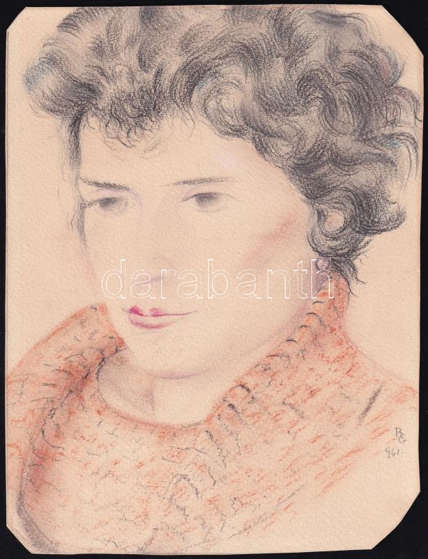 Ruttkay György (1898-1974): Felesége portréja, 1961. Pasztell, papír, jelzett, körbevágva, 24×18 cm<a href="https://www.darabanth.com/hu/gyorsarveres/438/kategoriak~Festmenyek-es-grafikak/Festmenyek-es-grafikak~500001/Ruttkay-Gyorgy-1898-1974-Felese