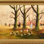 S. J. Reeve (?-): Vadászatról hazatérők. Olaj, karton, jelzett. Dekoratív fa keretben, 30×40 cm<a href="https://www.darabanth.com/hu/gyorsarveres/413/kategoriak~Festmenyek-es-grafikak/Festmenyek-es-grafikak~500001/S-J-Reeve-Vadaszatrol-hazaterok-Ola