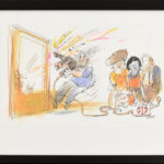 Sajdik Ferenc (1930-): Falfúró (Reader’s Digest illusztráció). Vegyes technika, papír, jelezve jobbra lent. 14×22 cm. Üvegezett fakeretben. / mixed technique on paper, signed, framed