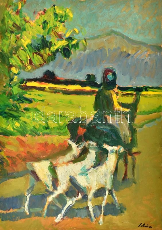 Schéner Mihály (1923-2009): (…) Ígéret-Földjére. Olaj, farost, jelezve jobbra lent. Hátoldalán autográf felirattal. 70×50 cm<a href="https://www.darabanth.com/hu/gyorsarveres/422/kategoriak~Festmenyek-es-grafikak/Festmenyek-es-grafikak~500001/Sche