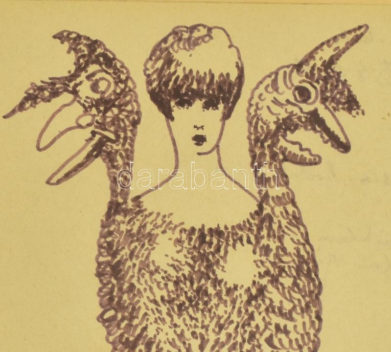 Schéner Mihály (1923-2009): Máj-pinkulum, csöcsői szem-száj. filctoll, papír. J.n. Diabolikon infernális történetek c. kötetben reprodukált. Üvegezett keretben 30×20 cm Schéner Mihály emlékkiállításon szerepelt 2010-2011-ben a Lyukasóra Galériában. / felt