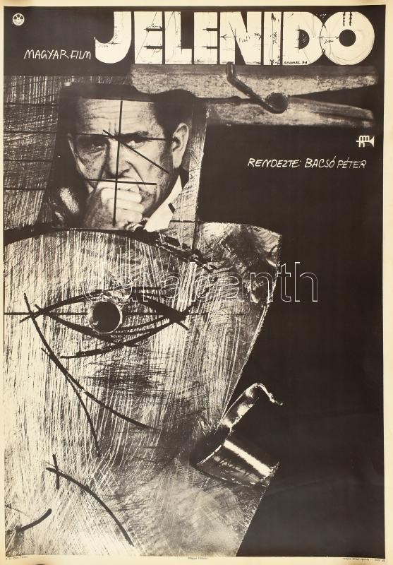 Schmal Károly (1942-): Jelenidő, 1971. Rendezte: Bacsó Péter. Filmplakát, papír, jelzett a plakáton. Offsetnyomda, Magyar Hirdető. Lapszéli apró szakadásokkal és gyűrődésekkel, feltekerve, 58×81 cm<a href="https://www.darabanth.com/hu/gyorsarveres/4