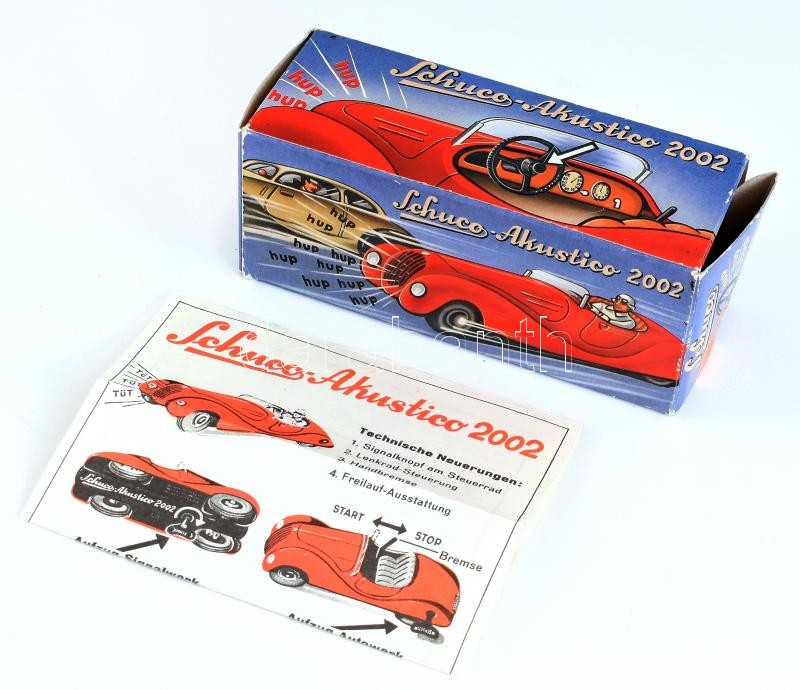 Schuco Akustico 2002 játékautó doboza, benne leírás