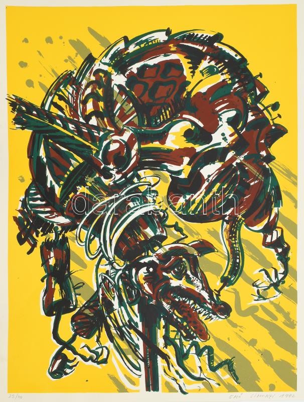 Simonyi Emő (1943-): Álom, 1992. Szitanyomat, papír. Jelzett, számozott (22/40). 62×46 cm<a href="https://www.darabanth.com/hu/gyorsarveres/421/kategoriak~Festmenyek-es-grafikak/Festmenyek-es-grafikak~500001/Simonyi-Emo-1943-Alom-1992-Szitanyomat-pa