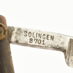 Solingen borotva, kopásokkal, h: 15,5 cm