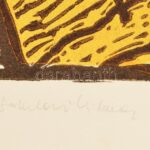 Somlai Vilma (1938-2007): Kék lámpa. Színes linómetszet, papír, jelzett, hátoldalán Rézkarcoló Művészek Alkotóközössége pecsétjével, sérülésekkel, 39×30 cm<a href="https://www.darabanth.com/hu/gyorsarveres/436/kategoriak~Festmenyek-es-grafikak/Festm