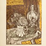 Somlai Vilma (1938-2007): Kék lámpa. Színes linómetszet, papír, jelzett, hátoldalán Rézkarcoló Művészek Alkotóközössége pecsétjével, sérülésekkel, 39×30 cm<a href="https://www.darabanth.com/hu/gyorsarveres/436/kategoriak~Festmenyek-es-grafikak/Festm