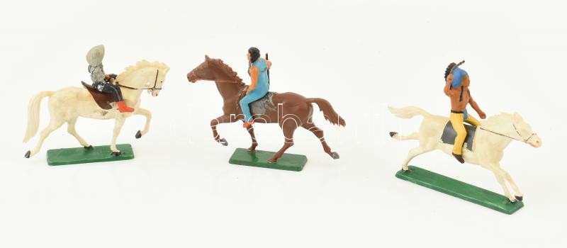 Starlux retró lovas indián és cowboy figurák, 3 db, kisebb kopásnyomokkal, az egyik sérült, h: 9-10,5 cm<a href="https://www.darabanth.com/hu/gyorsarveres/415/kategoriak~Mutargy-papirregiseg-egyeb/Jatekok~500013/Starlux-retro-lovas-indian-es-cowboy-
