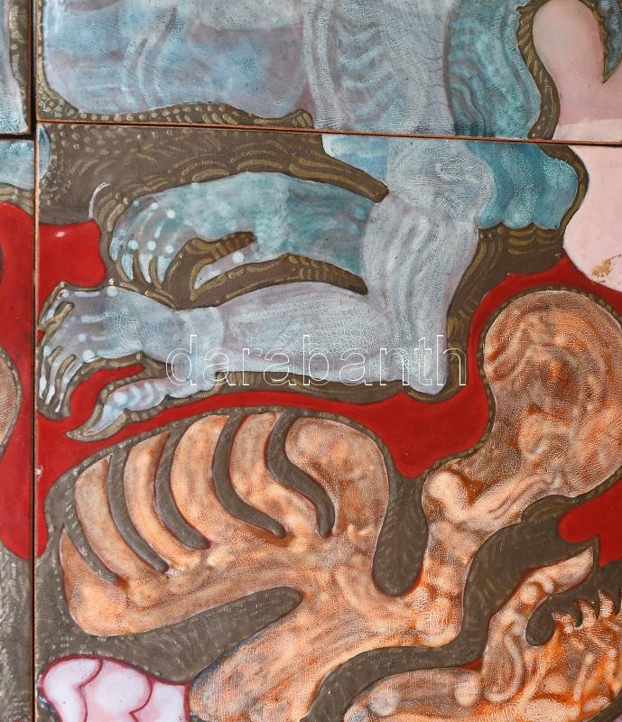 Stefániay Edit (1936-2010): A tudás fája (keserű szüret). Tűzzománc, rézlemez. Hátoldalán a művész címkéjén feliratozott. 61×100 cm. Fakeretben. KIZÁRÓLAG SZEMÉLYES ÁTVÉTEL, NEM POSTÁZZUK! / ONLY PERSONAL COLLECTION AT OUR