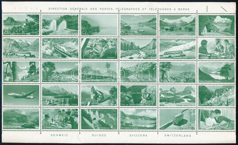 Svájc tájak levélzáró 30-as ívdarab / Swiss landscapes labels sheet of 30