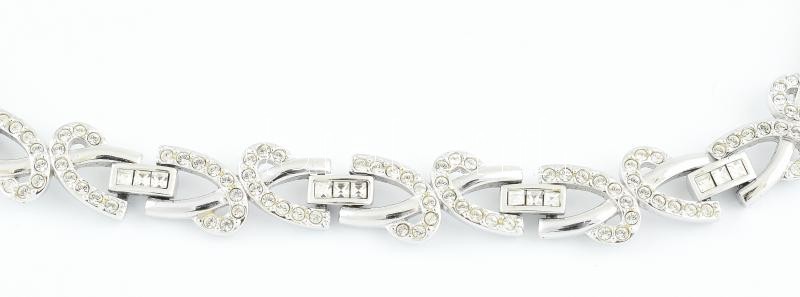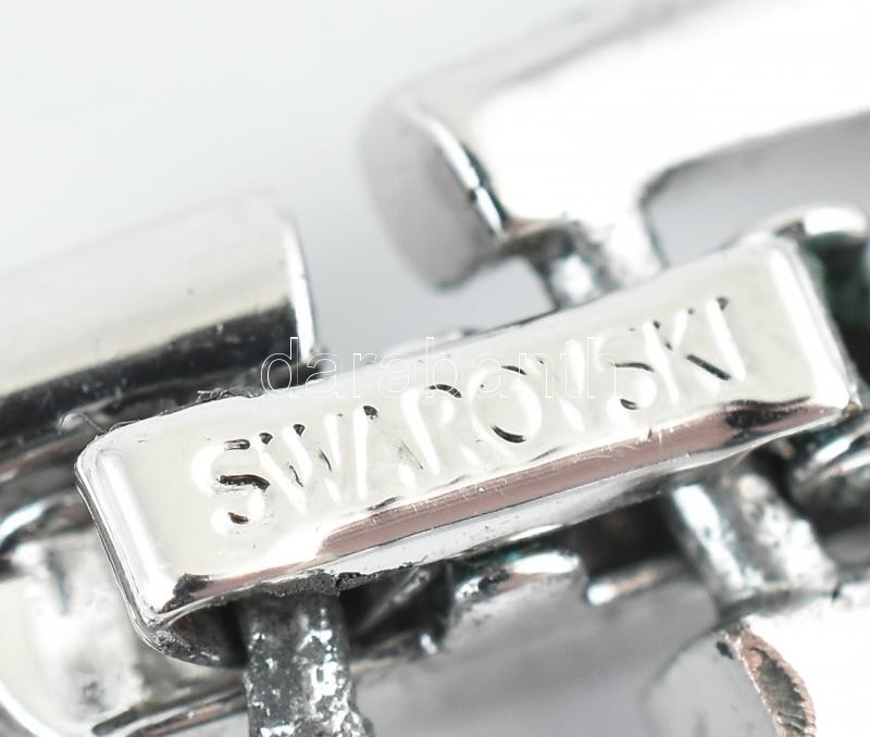 Swarovski jelzésű ródiumozott fém nyaklánc, strasszokkal díszítve, néhány kő hiányzik, h:42cm