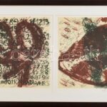 Swierkiewicz Róbert (1942-2019): Cím nélkül, 1993. Litográfia, papír. Jelzett. Számozott: 127/200. 30×30 és 30×30 cm. Kányádi Sándor: Vae Victis c. könyvéből. Üvegezett fa keretben. / Litograph on paper, signed, numbered: 127/200. Framed<a href="htt