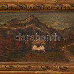 Szabó Gábor (?-?): ‘Kis Ararát’ hegy. Olaj, fa, hátoldalán címkén jelzett. Dekoratív, kissé sérült fakeretben. 6×10 cm