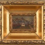 Szabó Gábor (?-?): ‘Kis Ararát’ hegy. Olaj, fa, hátoldalán címkén jelzett. Dekoratív, kissé sérült fakeretben. 6×10 cm